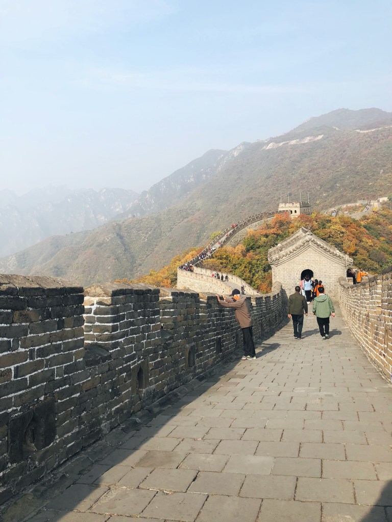 Being on the Great Wall is like a dream. You see it in pictures, but they can’t fully portray what it’s really like to be on the Wall. These days, the winding path is filled with people stopped to take pictures (I did my fair share of this, too!). But you really have to just take in the scenery surrounding the Wall. We came at the best time, since the leaves are just starting to change in this area. The mountains go on for miles, and the sun shines so bright.